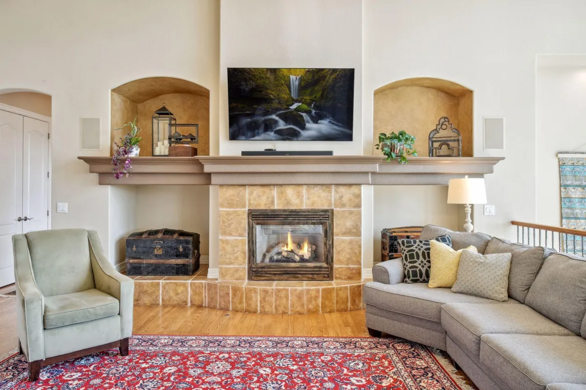 $5,000 lender credit! This spacious 4-bedroom, 6-bathroom ranch-style home in the picturesque Diamond Ridge Estates boasts a backyard that backs onto 64 acres of open space, offering gorgeous views. Enjoy the private putting green, outdoor fireplace, and large deck, perfect for relaxation and entertaining. Inside, the gleaming gourmet kitchen is a chef's dream, featuring hardwood cabinetry, granite countertops, and stainless steel appliances, including two dishwashers for ultimate convenience. The immense great room, with its vaulted ceilings and floor-to-ceiling windows, invites you to take in the stunning scenery. The main floor features a spacious primary bedroom with breathtaking views, a fireplace, and a spa-like bathroom. There's also a cozy study with a fireplace and laundry room.